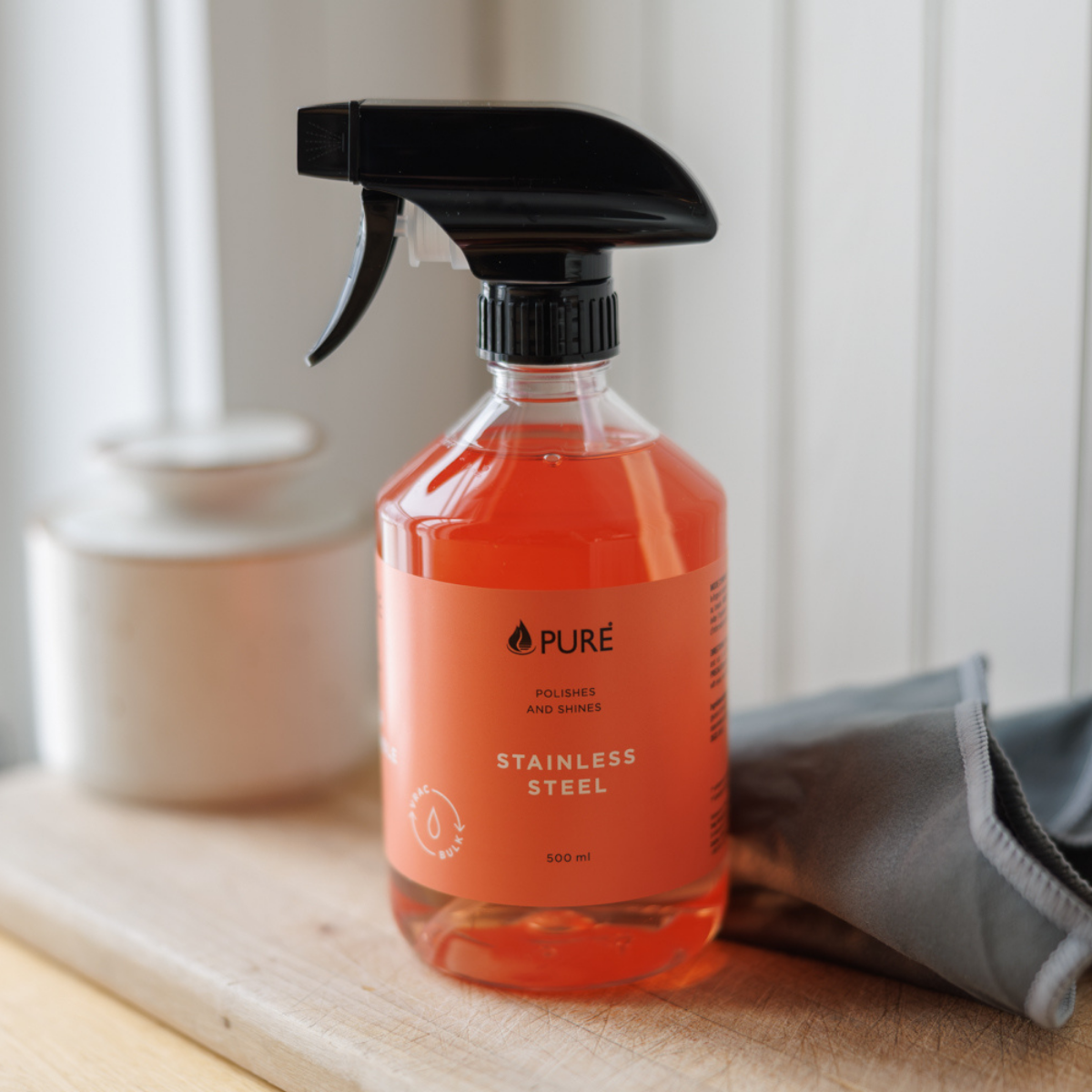 Pour la surface la plus diva de la cuisine, Pure a créé un nettoyant exprès pour l’acier inoxydable. Ce produit ne fait pas juste nettoyer, ils gardent les surfaces propres encore plus longtemps.😉 Vient avec un linge de ratine.