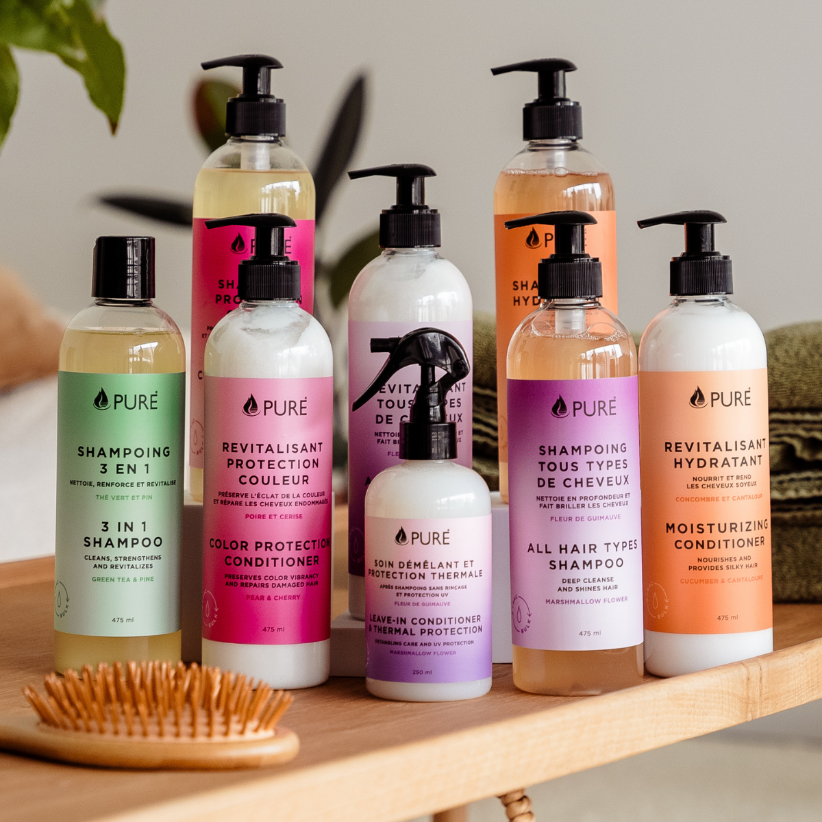Pure vous propose une gamme de soins capillaires écoresponsable et innovante pour une chevelure resplendissante et en santé, sans compromis. Fait à partir des ingrédients actifs de la nature.