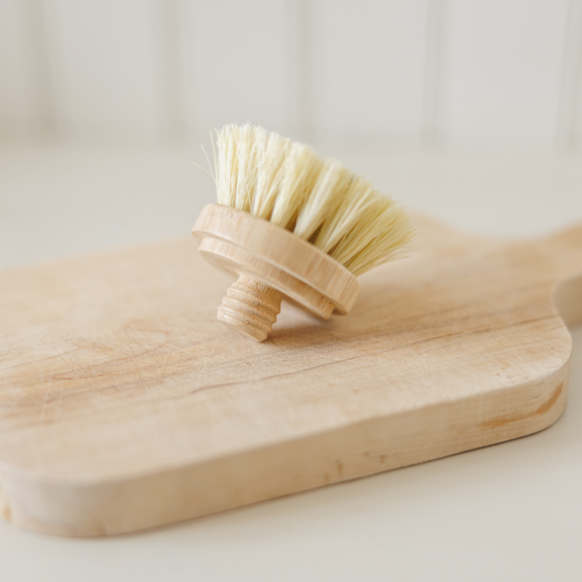 Cette tête recharge est compostable. Elle se visse sur notre brosse à vaisselle ou notre pommeau. Fait à partir de bambou et de palmier, elle est durable et écologique.